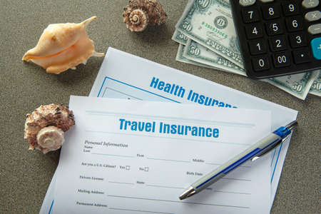Insurance concept. Travel and Accident Insurance. Insurance policy andturtle