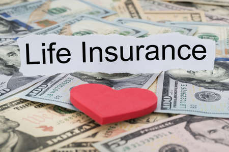 Life Insurance text on sticky notes with keywords isolated on office desk.