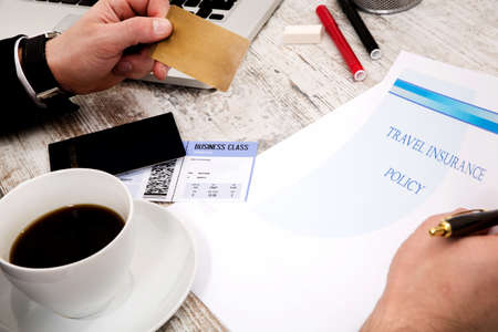 Insurance policy. The text label in the document of the Treaty. Transfer of risk in a business by purchasing an insurance policy from an insurance company.