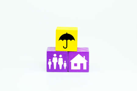 colored cubes with family icons, umbrellas and houses. the concept of family protection