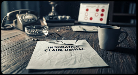 Eyeglasses rest on top of a vision insurance form, with a pen nearby, creating a clean, organized workspace in soft pastel tones.