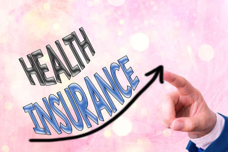 Text sign showing Health Insurance. Business photo text system of financing the medical expenses of the insured digital arrowhead curve rising upward denoting growth development concept