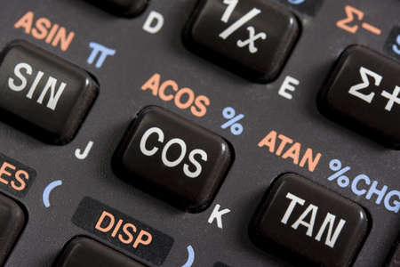 A detail of scientific calculator with sinus, cosinus, tangens, inverse, sum functions.
