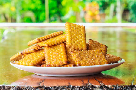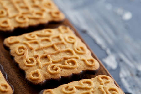 Close Up Sweet Crunchy Crackers isolated on abstract background.