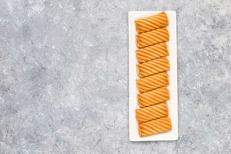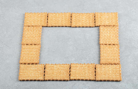 Sweet Crunchy Crackers isolated on abstract background. Flay Lay. Copy Space.