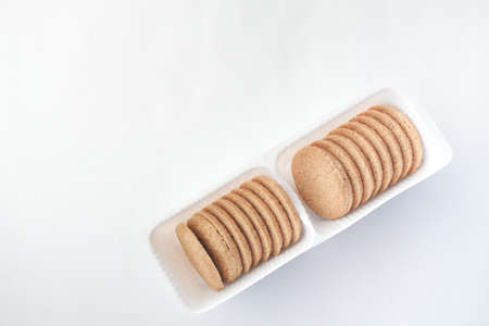 Brown color Wheat biscuits in the Plastic tray isolated on Background.