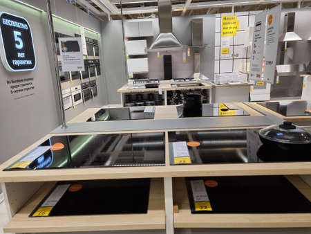 Russia, St. Petersburg 03/16/2021 Kitchens in the Ikea store for sale