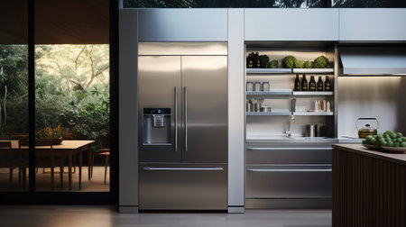 a modern refrigerator in a loft style with built in appliances