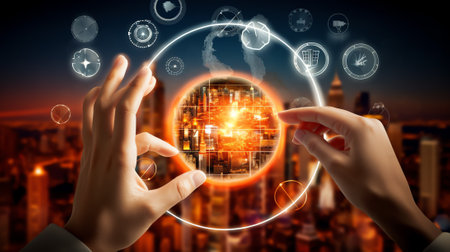 Hand touch Holographic User Interface, Digital and Innovation Technology.