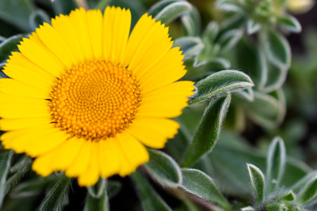 Close-up shot of Asteriscus sericeus, the Canary Island daisy, a species in the daisy family endemic to the Canary Islands. Beauty in nature.