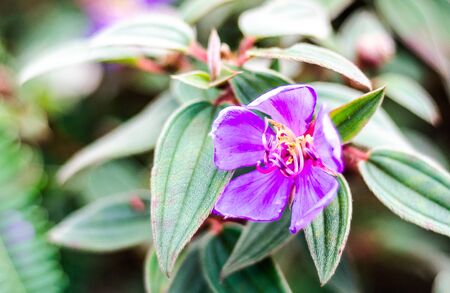 purple flower with green leaf background, violet flower in the garden