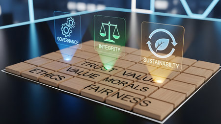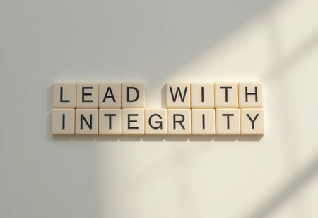 This image features a powerful message, Lead with Integrity, crafted with tile letters against a soft background. Ideal for promoting values in business settings.