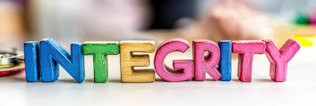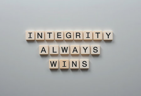 A compelling visual representation of the phrase Integrity Always Wins using letter tiles. This image conveys a strong message of motivation, encouraging positive values and ethical behavior in personal and professional life.