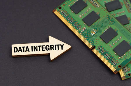 technology and computer concept. On the black surface lies RAM and an arrow with the inscription - Data integrity