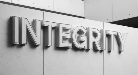 This image features a striking display of the word Integrity in a modern architectural context, highlighting core values and ethical principles.