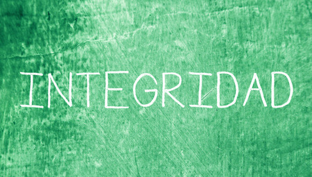 ETHICS, RESPECT, HONESTY and INTEGRITY. Green chalkboard background