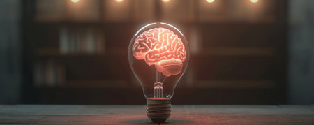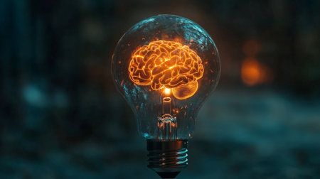Futuristic light bulb with animated brain inside, representing digital innovation generative ai