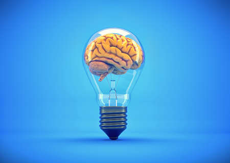Human brain inside a lightbulb . Brainstorming creative idea . This is a 3d render illustration .