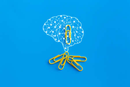 Great ideas concept with human brain, paperclip,thinking,creativity,light bulb on blue background,new ideas concept