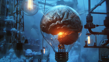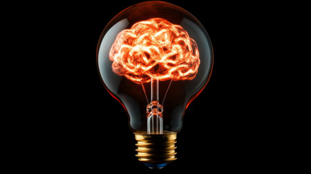 Human brain inside an incandescent light bulb, representing new ideas and creativity, futuristic look, generative ai