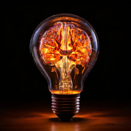 Human brain forming inside a vibrant light bulb, symbolizing inspiration generative ai