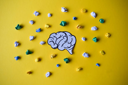 yellow paper brain shape. mental health. Neurology and Psychology care.