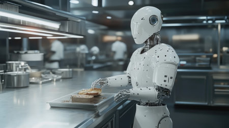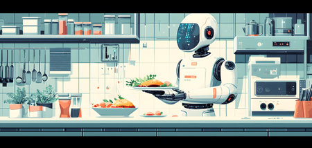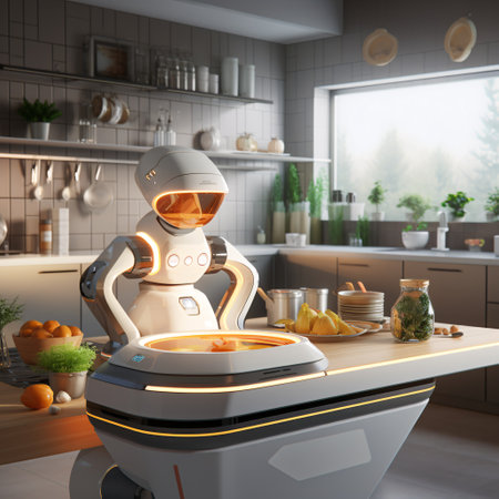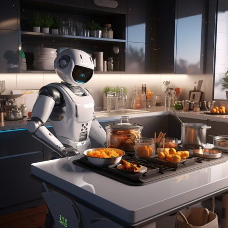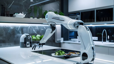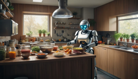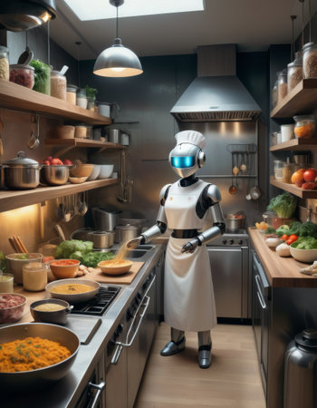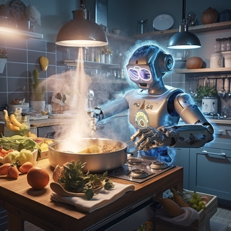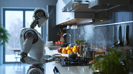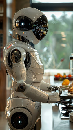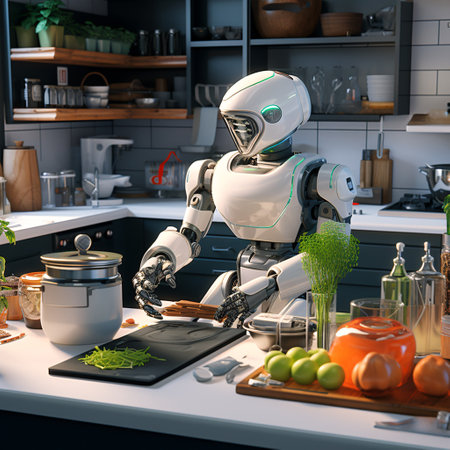 Robotic Chef Preparing Meal in Modern Kitchen