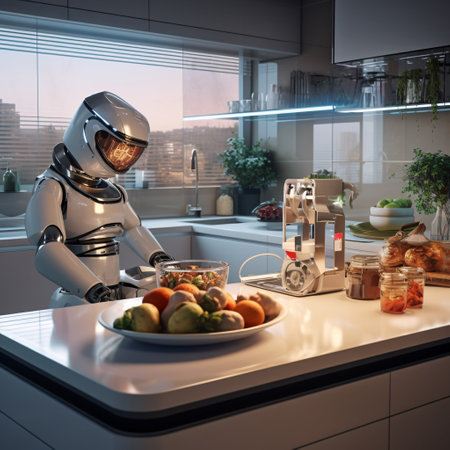 Futuristic Robot Preparing Meal in Modern Kitchen