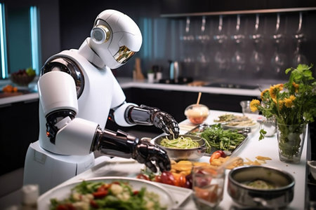 A robotic chef preparing a five-star meal AI generated