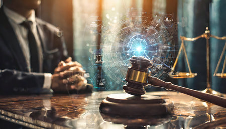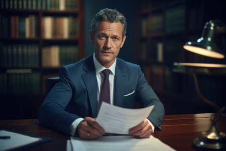 Efficiently Equipped: A Lawyer's Distinguished Desk – Examining Crucial Case Files with Technology