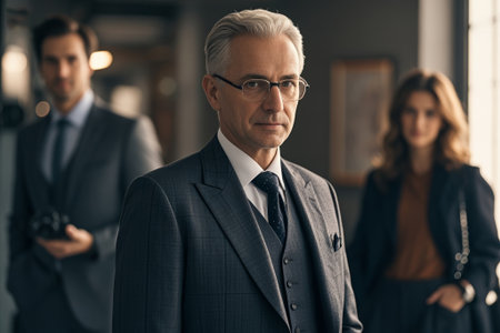 Confident Lawyer with Gray Hair, Portrait of Successful Businessman in Elegant Suit, Office Leader
