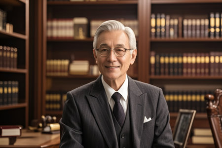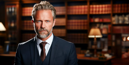 Accomplished lawyer in a grand legal office, symbolizing professional and legal success.