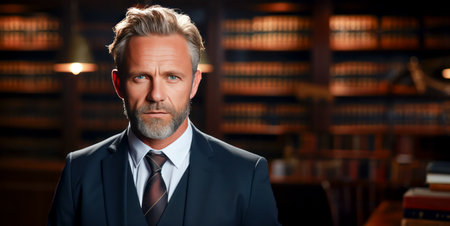 Portrait of a handsome mature man in a classic suit. Law and justice concept. Generative AI