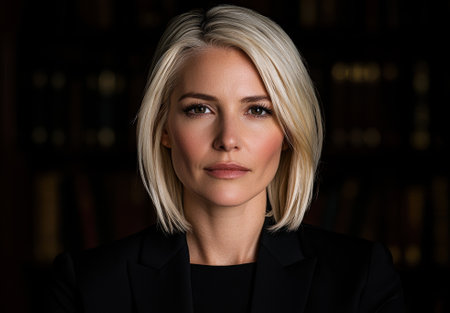 Portrait of a beautiful businesswoman sitting in a courtroom and looking at camera