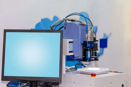 High-tech biochemical automatic analyzer in the blood transfusion laboratory.