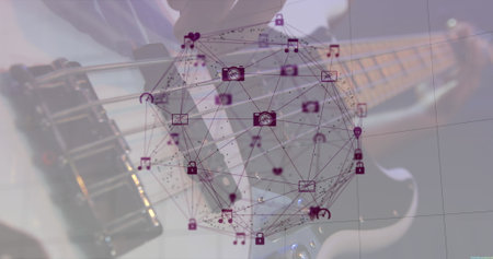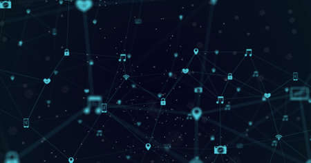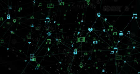 Image of network of connections with icons. global connections, networks and data processing concept digitally generated image.