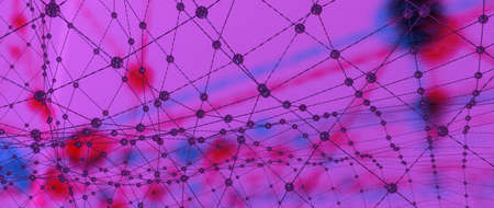 Glowing nodes with variational lines, 3d rendering. Computer digital drawing.