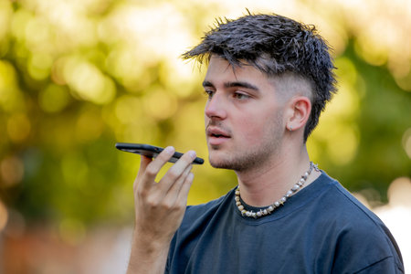 teenager with mobile phone sending voice message