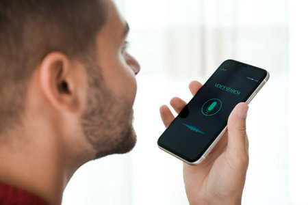 Person Using Voice Recognition Function On Mobile Phone