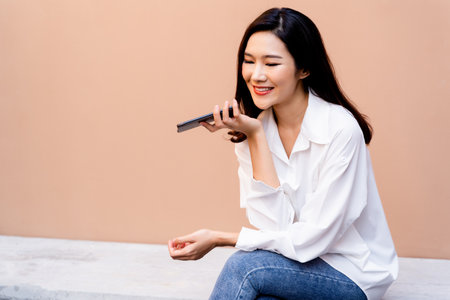 Women Using the voice recognition function, smart phones , Technology.