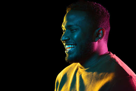 young african american man over black background