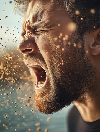 Man experiencing severe allergy reaction with intense expression