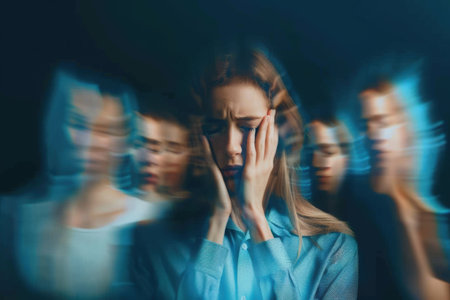 A person fighting through various mental health conditions expressing deep emotions. Concept Mental health struggles, Emotional expression, Inner turmoil, Vulnerability, Personal growth
