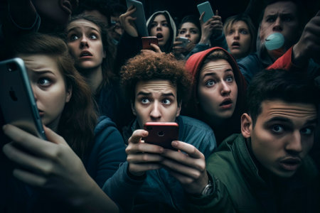 An impactful image depicting individuals isolating themselves with smartphones, symbolizing the mass numbing effect of social media.