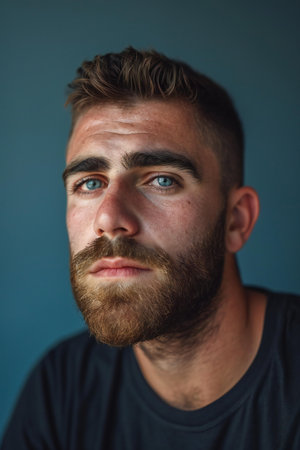 Portrait of a young man with a beard on a blue background