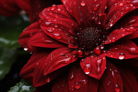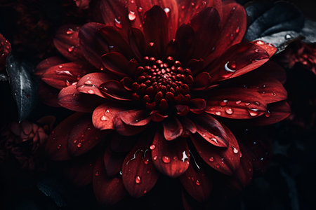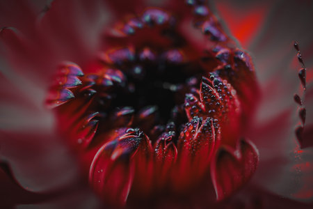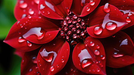 Macro shot of a red dahlia flower with water drops