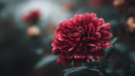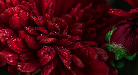 Beautiful red chrysanthemum flower with dew drops