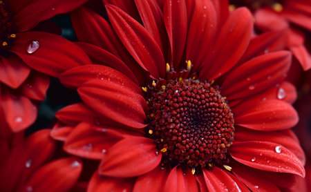 Generative AI : Red chrysanthemum flower macro closeup