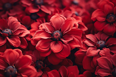 Blooming Scarlet Beauties: Captivating Close-up View of Red Flowers, Aspect Ratio 3:2