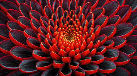 This image showcases a striking close-up of a flower with rich red and black petals. The composition highlights the flower's detailed structure, with radial symmetry. Strong lighting emphasizes the textures and colors. Suitable for various design applications, this image could be utilized for editorial or commercial purposes.